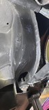 Beim Einbau des Abgasanlage ist uns aufgefallen dass der Luftbalg der hinteren rechten Luftkammer minimal den Längsträger berührte. Das Problem ist, das Blech des Längsträgers ist minmal nach aussen gebogen, das hatte man wahrscheinlich bei den Karosseriearbeiten nicht gesehen oder drauf geachtet. Ich hatte mich im letzten November beim Einbau der rechten hinteren Luftkammer gewundert dass diese sich etwas schwerer einbauen ließ als die linke Luftkammer, aber dem habe ich weiter keine beachtung geschenkt, ist ja auch immer was eng da unten in den Ecken.