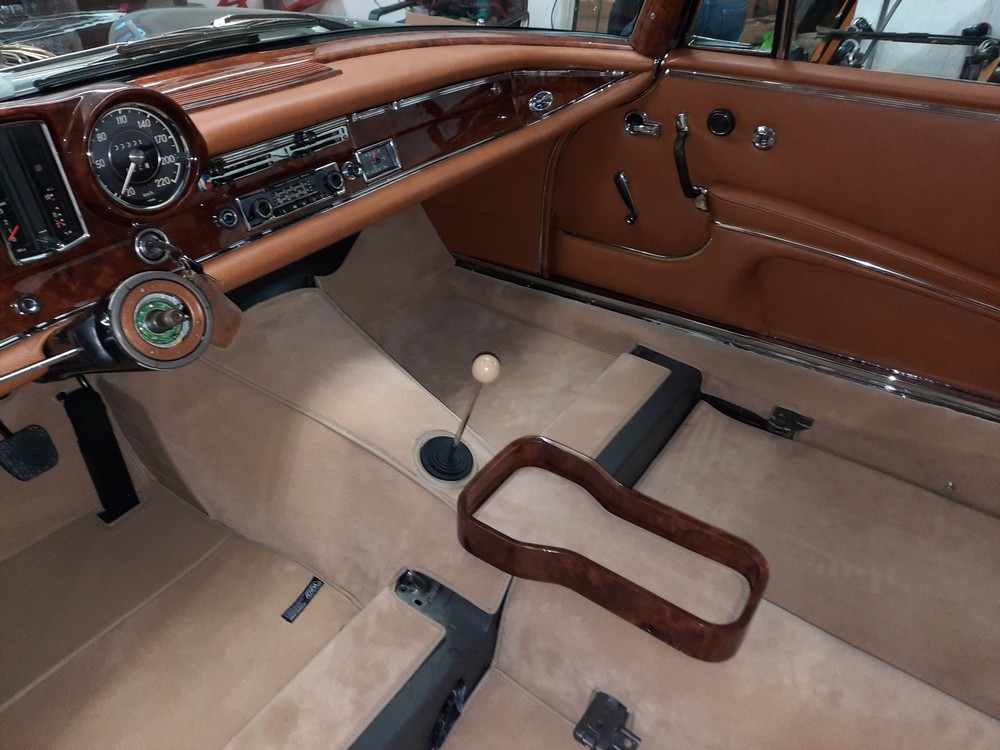 In der letzten Aprilwoche 2023 wurde der Fahrzeugboden im 1. Schritt mit dem "isoproQ" Produkt 270-270017, Unterbau-Filz, Luftschalldämmung, syntetisch, unverrottbar, schwarz, ca. 10mm dick ausgelegt. Danach wurde im 2. Schritt der Teppich von KHM Velour Crem-Beige 452 ausgelegt und an bestimmten Stellen mit Druckknöpfen befestigt.