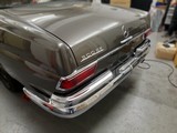 Hier die entgültige Montage kompletter Heck-Chrom, die Stoßstangen mit Kennzeichenbeleuchtung, die Rückleuchten mit Heckdeckelschloss und Chromabstandsleisten, der Heckdeckelchrom, die oberen und unteren Chromleisten um die Heckscheibe, die Abdeckchromleisten rechts und links auf den Fensterschächte der Fondfenster und die Sickenleisten auf den hinteren Seitenwänden rechts und links.