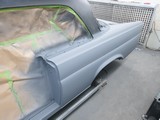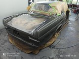 Hiernach wurde der dunkelgraue 2K-Füller genau wie das Dach letztlich nass mit 2000er superfein geschliffen und für die Lackierung mit Basislack MB 172 Anthrazit-Grau und Klarlack von NEXA vorbereitet.