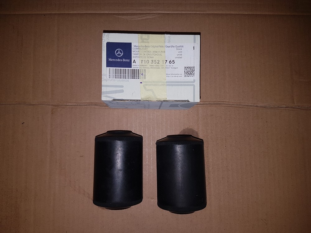 2 x Rep-Sätze A109 586 0035 für die Lagerung der Schubstreben an den Achsrohren, 4 Sicherungsbleche A111 352 0173 und 2 x Gummilager A110 352 1065 für die Befestigung Schubstreben am Aufbauboden