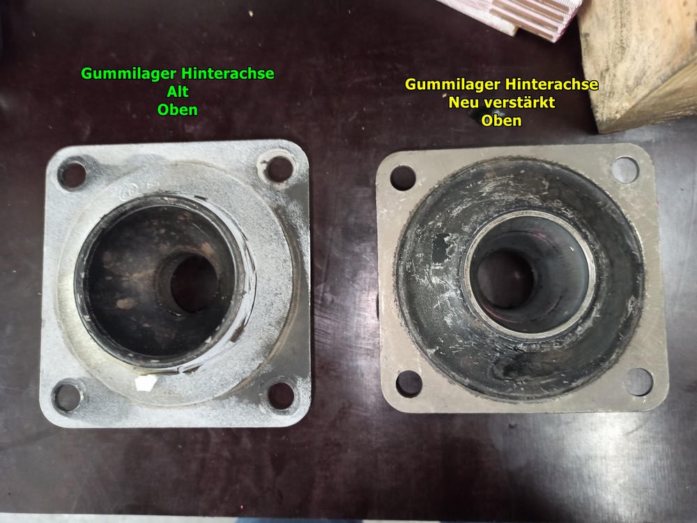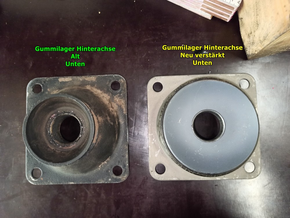 Neues verstärktes Gummilager für den Achsträger der Hinterachse |