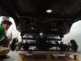 Einbau der Hinterachse am hinteren Unterboden des W112 Coupe.