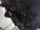 Der Achsträger der Hinterachse genau unter dem Gummilager im Kofferraum positioniert |