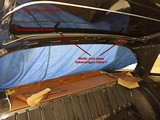 Nach dem Verkleben der Akustikstreifen am inneren Dach haben wir mal testweise die Spann-Spriegel für die spätere Himmelspannung eingesetzt. Das sind insgesamt 5 Stück, einer für hinten, 3 für die Mitte und einer für vorne. Die 3 mittleren sind gleich, der hintere und der vordere sind unterschiedlich. Die 3 mittleren gingen leicht einzusetzen, der vorderr der ging so, aber der hintere machte schon einige Probleme beim Einbauen und Ausrichten. Letztlich waren alle 5 Spann-Spriegel eingesetzt und gut ausgerichtet. Das sieht jetzt gut aus, da kann demnächst der Himmel-Einbauer kommen.