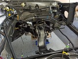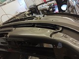 Fertiger Heizungskasten mit den Dichtungen für Entfrosterdüsen Fertiger Heizungskasten mit dem Vorlaufrohr Hier muss der Heizungskasten hin Hier ist der Heizungskasten montiertAls nächstes haben wir die beiden Entfrosterdüsen eingebaut. Um die rechte Entfrosterdüse einzubauen muss vom Wischermototor die kurze Verbindungsstange temporär abmontiert werden, weil die Entfrosterdüse dahinter liegt. Jetzt konnten wir die rechte Entfrosterdüse einbauen, das war relativ einfach. Die jeweils 2 Befestigungsklammern welche die Entfrosterdüse am Heizungskasten fixieren waren mit etwas Geschick schnell geschlossen. Letztlich noch das Anbringen der Gummifixierung oben aussen an der Entfrosterdüse. Die rechte Entfrosterdüse war montiert. Als nächstes haben wir die linke Entfrosterdüse eingebaut. Hier sind wir ähnlich vorgegangen wie auf der rechten Seite. Auch hier gab es keine nennenswerte Probleme.