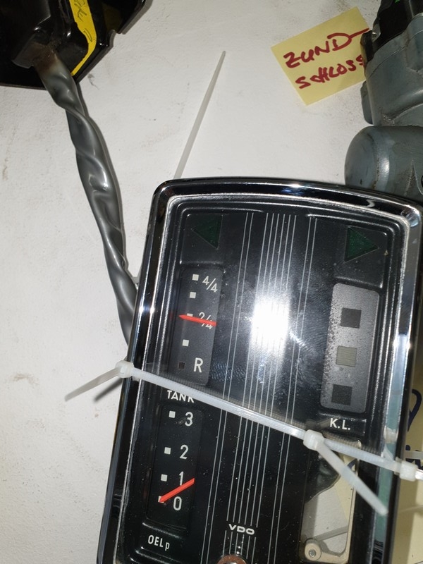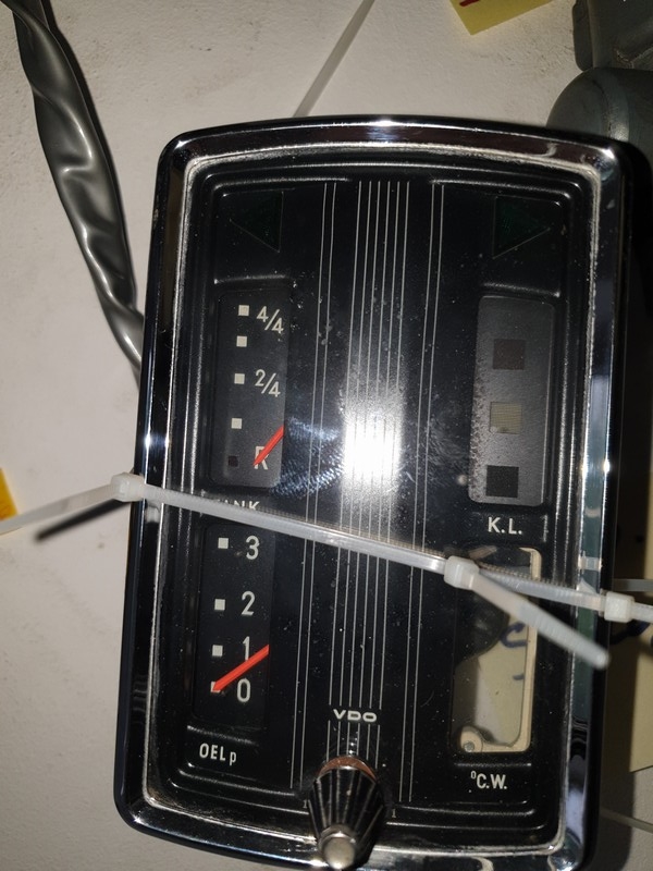 Ich erinnerte mich, dass ich vor dem Einbau des neuen Kabelbaumes, alle elektrischen Komponenten am neuen Kabelbaum "Live" im Mai 2020 durchgetestet hatte, auch den VDO Gabelheber und der funktionierte damals einwandfrei. Die Kraftstoff-Anzeigenadel im Kombi-Instrument, sowohl als auch die Anzeige Reserve-Warnlicht.