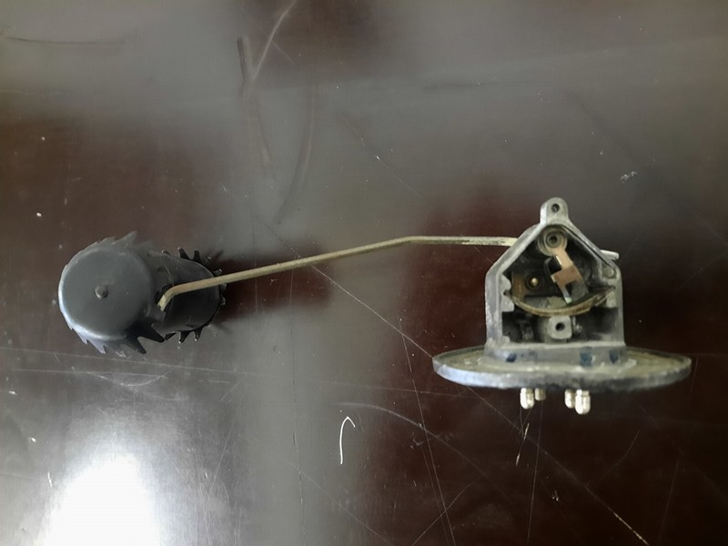 Jetzt Zündung ausgeschaltet und den Stecker abgemacht. Den Gabelheber geöffnet und innen gereinigt, bei genauem Hinschauen habe ich gesehen dass der Widerstandsdraht zum Schleifkontakt nicht mehr existierte, der war weg. Die Anzeigenadel konnte also so nicht nicht funktionieren. Warum die Reserveleuchte funktionierte - i have no clue... Diesen VDO Gabelheber, Typ 27/47, 3-180 Ohm ist heute nicht mehr zu bekommen. Also was tun?