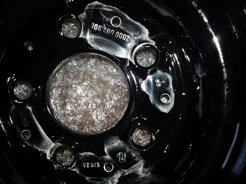 Für die TÜV Vorführung habe ich erst mal die 1teiligen Radkappen (lackiert in MB172 Anthrazitgrau Metallic), montiert.