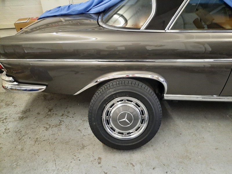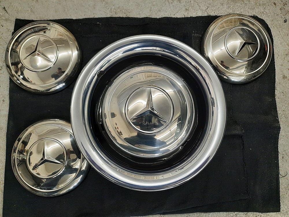 Laut früherer MB Verkaufsprospekten von zweifarbig lackierten W112 Coupes, sind bei den 1teiligen Radkappen die auszulackierenden Sterne in der unteren Wagenfarbe, also wie bei meinem Coupe in MB172 Anthrazit Metallic gezeigt. Bei den 2teiligen Radkappen, wurden die auszulackierenden Sterne in Dachfarbe, also wie bei mir in MB040 Schwarz lackiert.