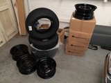 Einen Satz Nasenfelgen 6Jx14H (Kronprinz Stahlräder MB A108 400 0002), einmal mit 2teiligen Radkappen (äußere Chromzierringe und innere Chromkappen lackiert in MB040 Schwarz) und einmal mit 1teiligen Radkappen, lackiert in MB172 Anthrazitgrau. Die Nasenfelgen werden mit Michelin MVX-P 185/80 14 90H bereift.