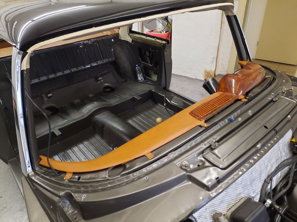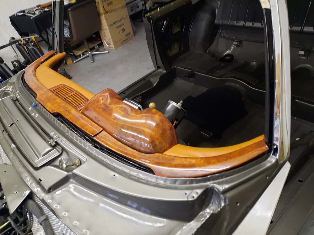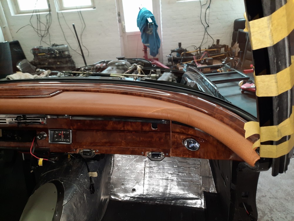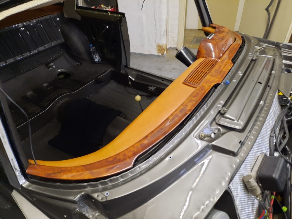 Im Januar/Februar 2023 wurde das Armaturenbrett eingebaut, beides, Holz- und Polsterverkleidungen