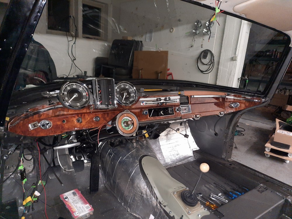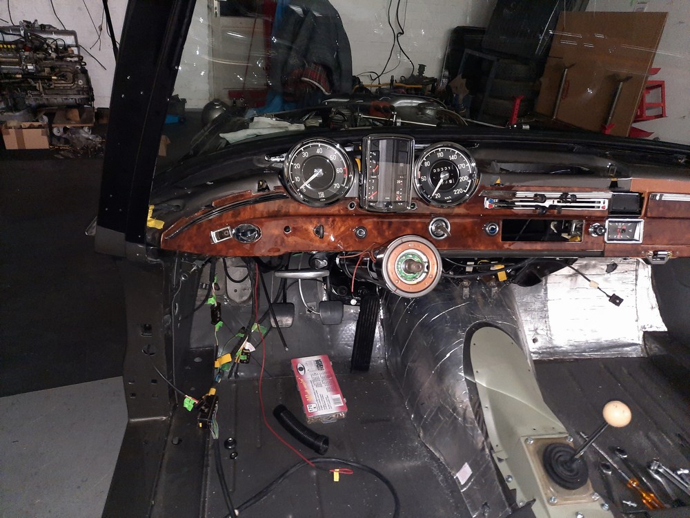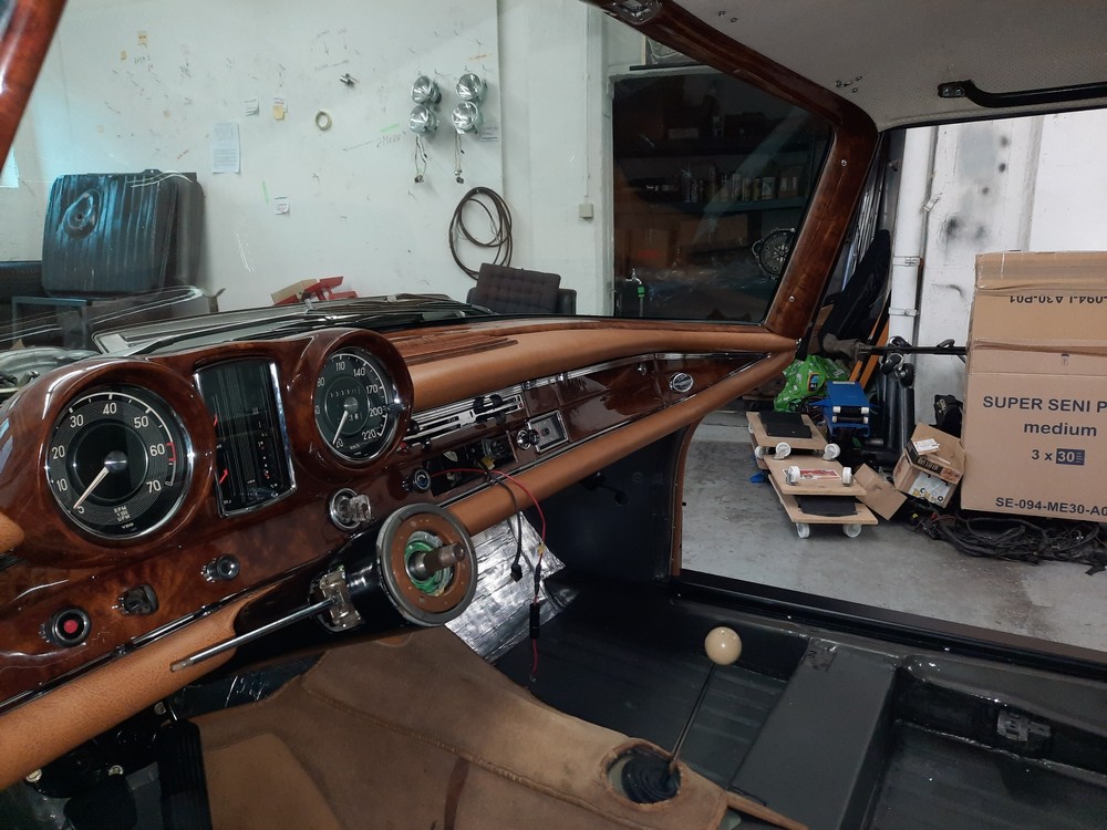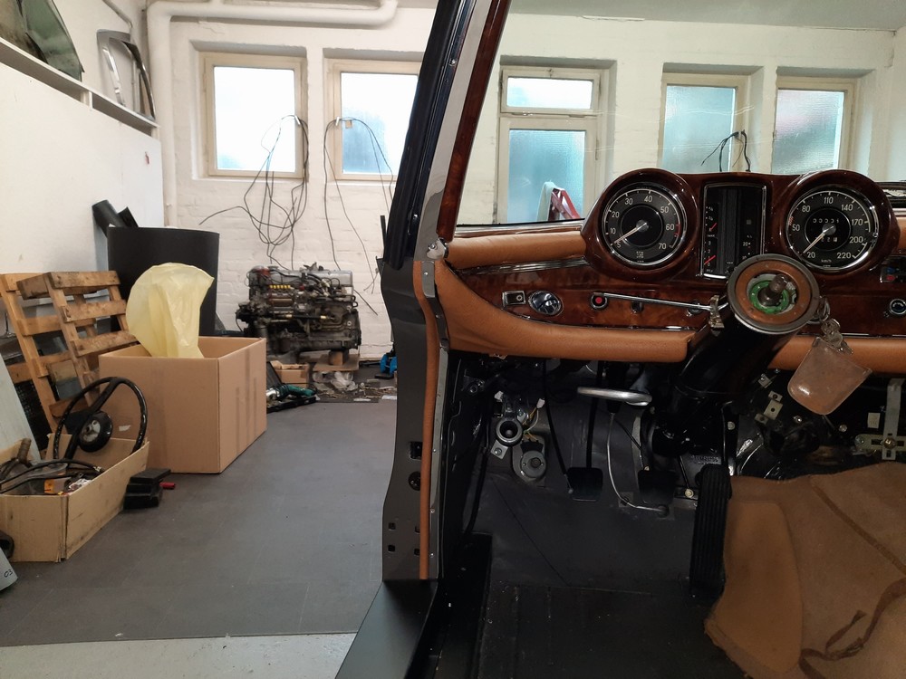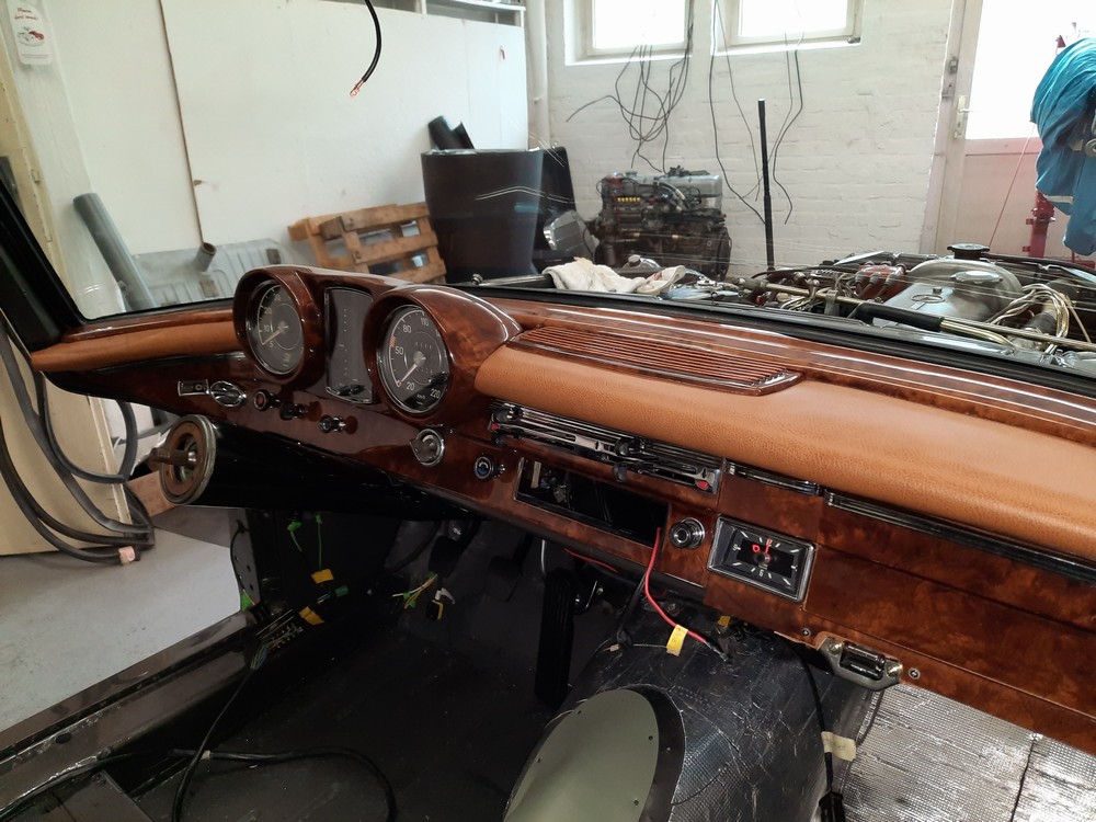 Im Januar/Februar 2023 wurde das Armaturenbrett eingebaut, beides, Holz- und Polsterverkleidungen