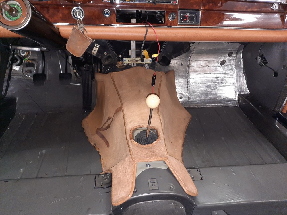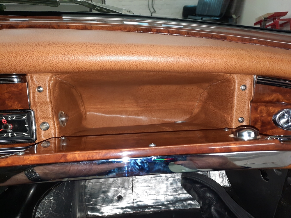 Die unteren und oberen Armaturenbrettpolster wurden mit Leder MB8006 Cognac 2-Ton neu beszogen.