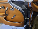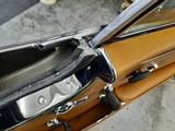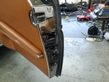 Danach wurde die neue Türverkleidung in die beiden Chromleisten unten und vorne eingesetzt und genau ausgerichtet, das perfekte Einsetzen gestaltete sich ein wenig schwierig wegen des neuen Lederbezugs welcher an den Kanten relativ dick schien, aber letztlich passte das alles wie dafür gemacht. Jetzt haben wir den Türgriff, die Rosetten für Türöffner und Innensicherung, die Fensterkurbel und den Drehknopf für das Ausstellfenster angeschraubt - das passte alles gut ohne grosse Probleme.