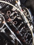 Alle Anbauteile wie Einspritzleitungen, Einspritzventile, Ölfilter, Ölleitungen, Kraftstoff-Filter, Dämpfer, Luftpresser, Saugrohr, Wasserbrücke, Wasserpumpengehäuse, LiMa, etc... abgebaut.