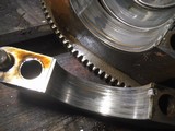 Mittlerweile wurde die Kurbelwelle und Hauptlager freigelegt. Wo keiner mit gerechnet hatte - es kam ein Hauptlagerschaden ans Tageslicht - schöne Sche...e. Die KW wurde erst mal gereinigt, überprüft und vermessen. Dann werden die KW-Hauptlagerzapfen poliert, die Toleranzen gemessen und wenn erforderlich auf das nächste kleinere Lagermaß 59,75mm geschliffen und poliert. Die Pleuellagerzapfen werden Natürlich auch bearbeitet. Danach wird die KW inklusive Kupplungsplatte neu gewuchtet......schaun mer mal.