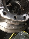 Die neu gewuchtete Kurbelwelle (siehe frisch gebohrte Löcher) natürlich auf Schaltgetriebe, inklusive Kupplungsautomat.