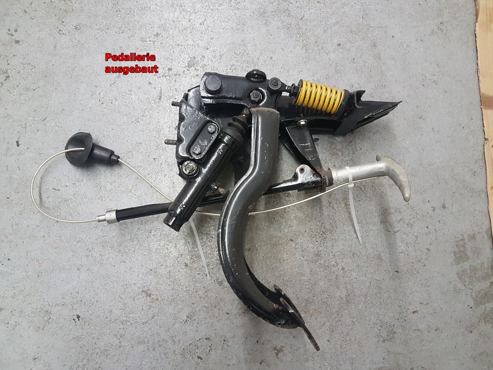 Die Pedalanlage habe ich Ende 2019 schon ausgebaut und erst mal ins Regal gelegt.