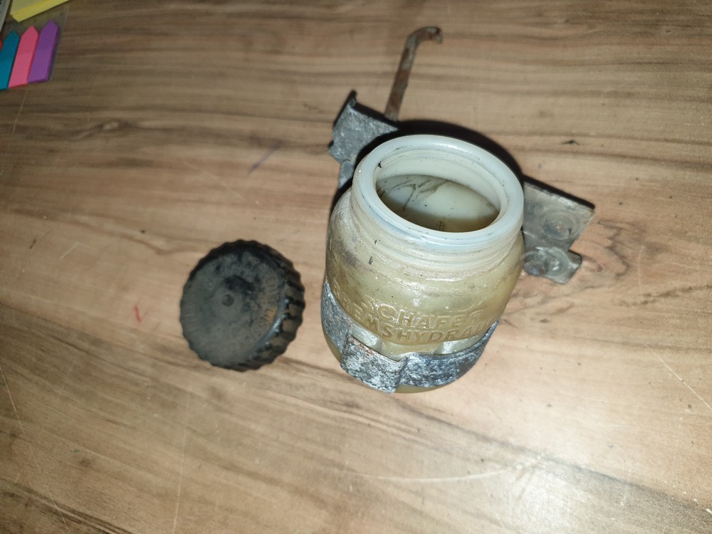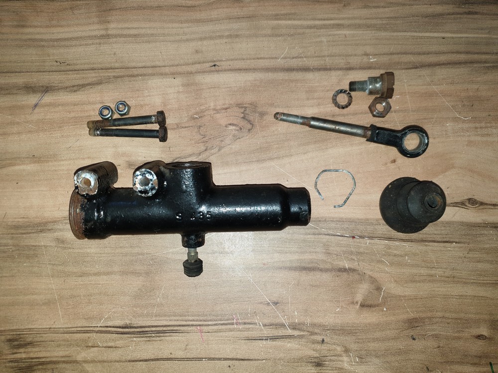 Der Kolben im GZ sitzt nach der langen Standzeit bombenfest und der GZ muss erneuert werden. Der Ausgleichsbehälter sieht noch funktionsfähig aus und wird aufgearbeitet oder vielleicht sogar erneuert.