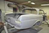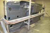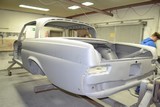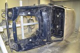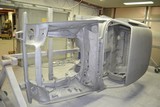 Hier die Rohkarosse bei Humberg auf dem Drehgestell 2 x mit Glasurit 801-703 CV Grundierfürller EP grundiert und wie es bei mir in der Halle ankam.