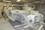 Die Rohbaukarosse wurde Donnerstag 26. September 2019 nach Ralf Humbold in Nottuln transportiert. Dort wurde wird sie rundum und innen und sandgestrahlt und anschliessend nach 99%tigen Entfernen des Reststrahlgutes 2 x nass in nass mit "Glasurit 801-703 CV Grundierfürller EP" grundiert.