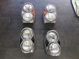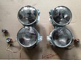 Die Exportscheinwerfer als Alternative zu den Euro's, damals waren die Hauptscheinwerfer in der s.g. Export-oder Doppelscheinwerferausführung als Sonderausstattung zu bestellen. In dieser Version hatten sie Scheinwerfer unten , das Abblendlicht oben, die Blinker aussen und die Parklichtinnen im Chromrahmen integriert. Hiervon habe ich einen kompletten Satz mit Boschreflektoren zum Überholen und eventuell späteren anbauen. Nebelscheinwerfer gab es bei dieser Version nicht integriert, die konnte man aber als Sonderaustattung, als zusätzliche Nebelscheinwerfer bestellen, oder auch nachträglich anbauen lassen.