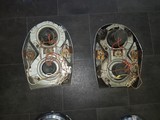 Die überholten Lampenträger, die 4 neuen Bosch Reflektoren und die neuen Scheinwerfer Zierringe |