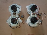 Hier mal die fertigen Halteplatten mit Lampenträgern, neuen Bosch Reflektoren, neue Leuchtmittel, neuen Zierringen und "runderneuerter" Verkabelung, alles zusammengebaut.