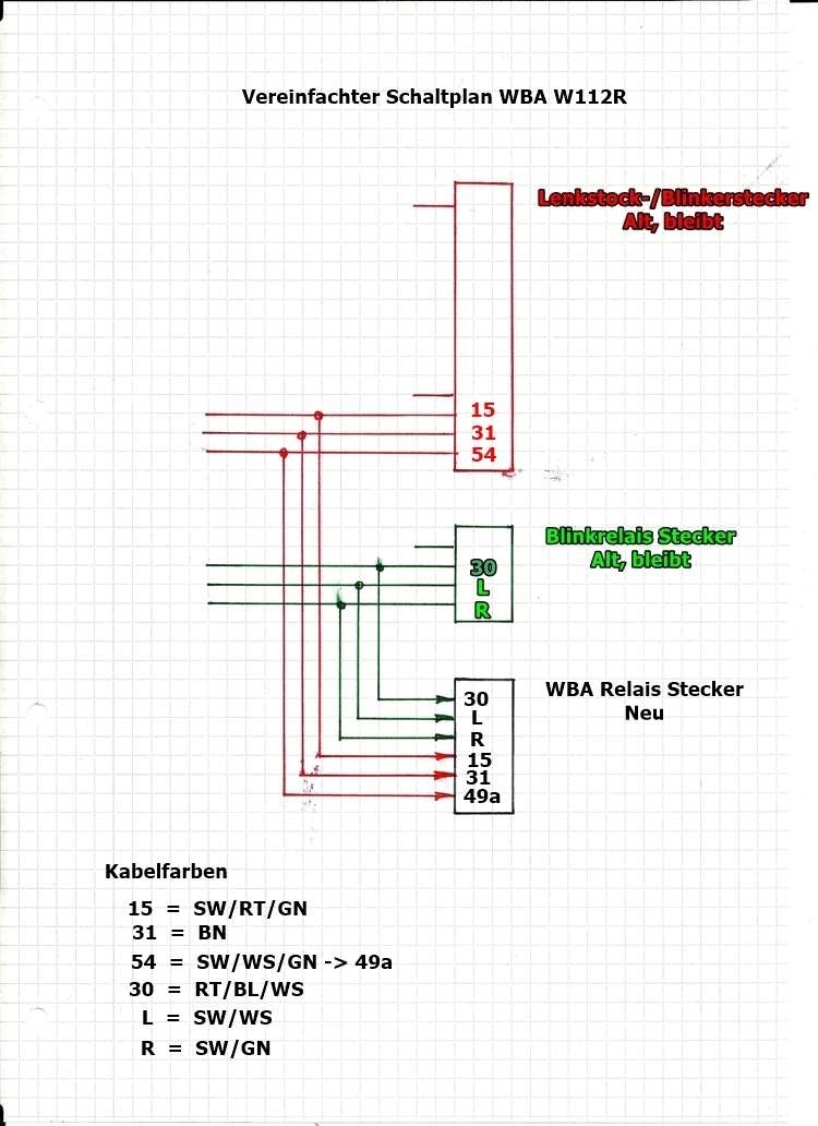 Folgende Kabel (Komponenten, Funktionen) habe ich dann noch für die Fertigung des neuen WBA "Kabelbäumchens" (Foto oben) verlegt.