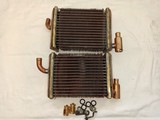 Der fertig überholte Heizungskasten Überholter Heizungskasten mit neuen Netzen und Ventilen Überholter Heizungskasten mit neuen Dichtungen (NOS)Das Heizungs-Vorlaufrohr wird später beim Einbau mit zwei kurzen Schauchstücken an den beiden Ventilen angeschlossen und an den beiden Ausgangsstutzen der WT's werden dann die Rücklaufschläuche angeschlossen.