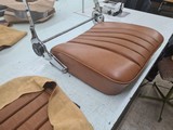 Die gesamte Innenausstattung wird neu beledert, inklusive strahlen und lackieren der Sitz- und Lehnengestelle, Aufarbeitung der Federkerne, neue Sitz- und Lehnenkissen und neue Pappen für Tür- und Fondverleidungen.