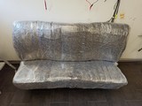 Die eingelagerte neu bezogene Rückbank mit Folie umwickelt |