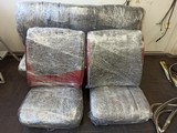 Davor die eingelagerten neu bezogenen normalen Vordersitze mit Folie umwickelt |