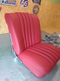Einer der Vordersitze neu bezogen und temporär zusammengebaut |