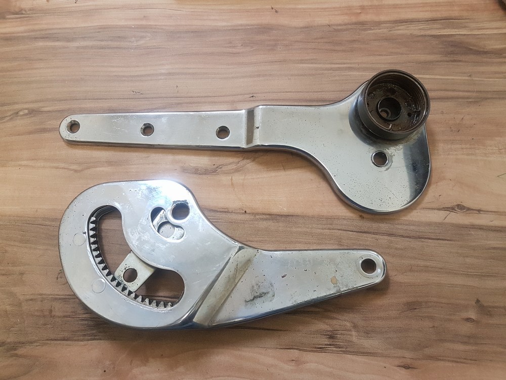 Die Sitzbeschläge für die normalen Vordersitze, 2 x Liegesitzbeschlag und 2 x Kippbeschlag sind mittlerweile neu verchromt vom Galvaniker zurück und die werde ich in den nächsten Wochen wieder zusammengebaut und dann wieder an den Vordersitzen montiert und eingestellt.