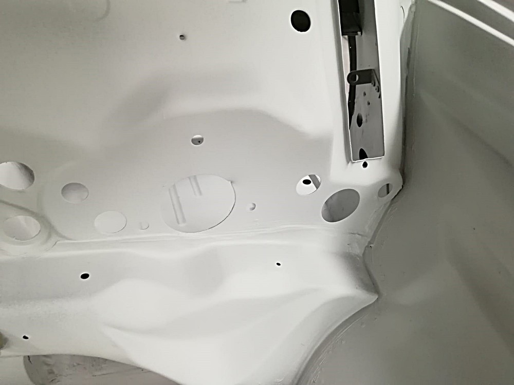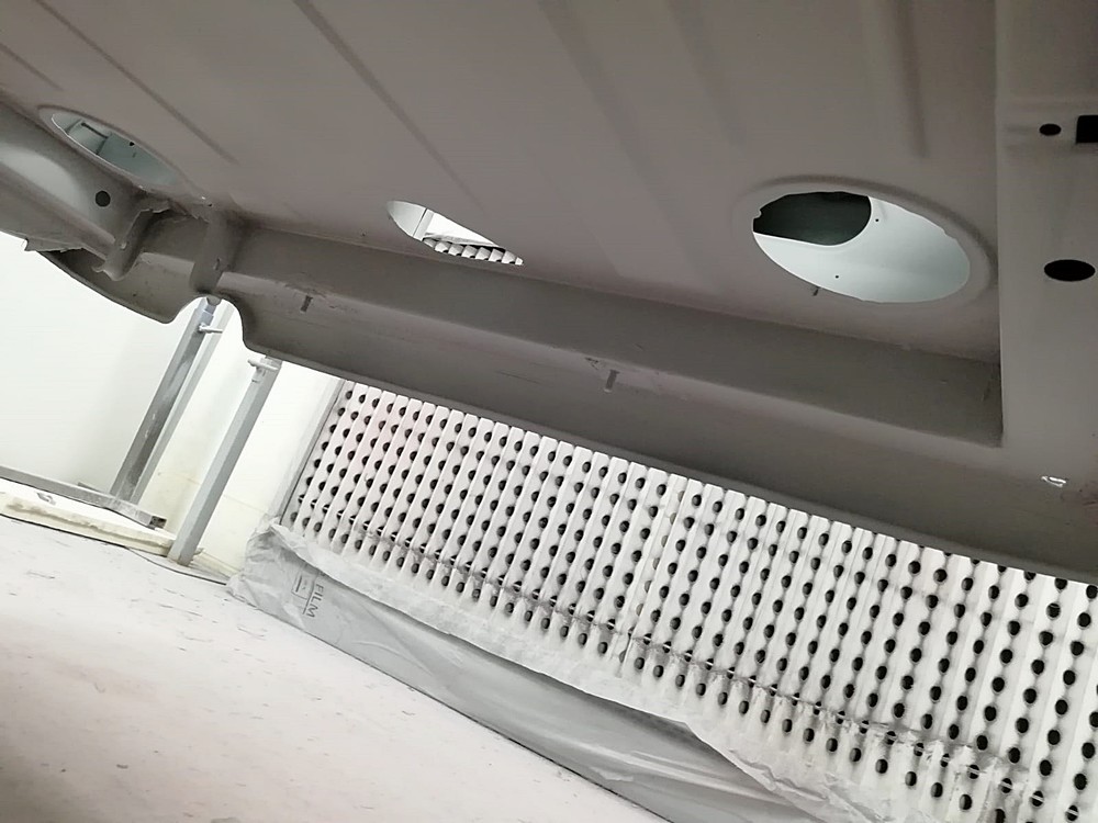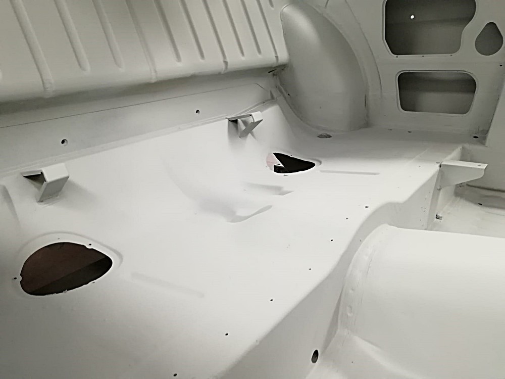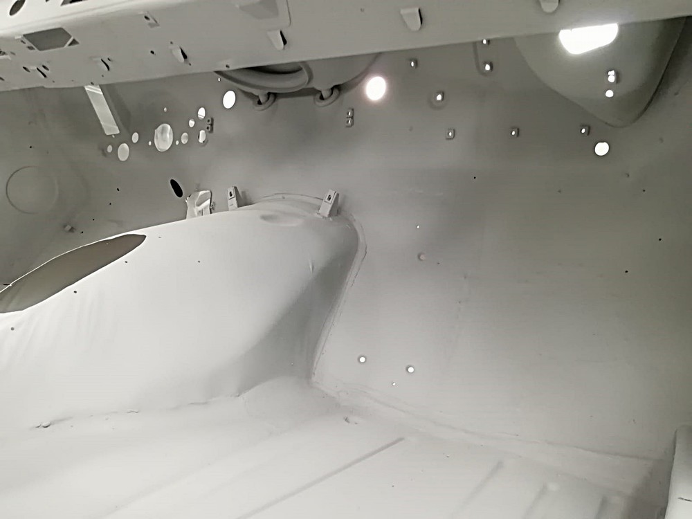 Der komplette Unterboden, der Kofferraum, der Innenraum inklusive Dach, der Motorraum und die 4 Radhäuser wurden das erste mal mit einem K2 Standox Schleif-Filler graufarben gespritzt und geschliffen |