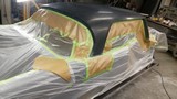 Nach diesem Feinschleifen wurde das Dach dann zur besseren Sichtbarkeit von Unebenheiten mit einem schwarzen 2K-Filler gespritzt, hier fällt normalerweise jede kleine Unebenheit auf, aber da war nichts derartiges zu sehen.