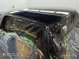 Bei dieser Schwarz-Uni Glanzlack fällt natürlich mehr als bei allen anderen Farbtönen jede Unebenheit im schwarzen glänzendem Lack sofort auf. Darum wurde das komplette Dach jetzt noch mal geschliffen, minimalst dünn gespachtelt und noch mals feingeschliffen.