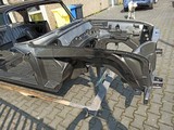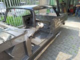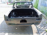 W112 300SE Coupe 06/1964 < Baureihe 112021 Restauration Der neue Lackaufbau Januar bis November 2020 Der neue Lackaufbau Die Schritte 7.x Dach, Seitenwände und Heck Das Fahrzeug wurde in "Zweiton" lackiert. Das Dach in MB 9040 Schwarz-Uni. Die Karosserie unten herum in MB 172 Anthrazit-Grau. Dach und Seitenwände fertig lackiert.