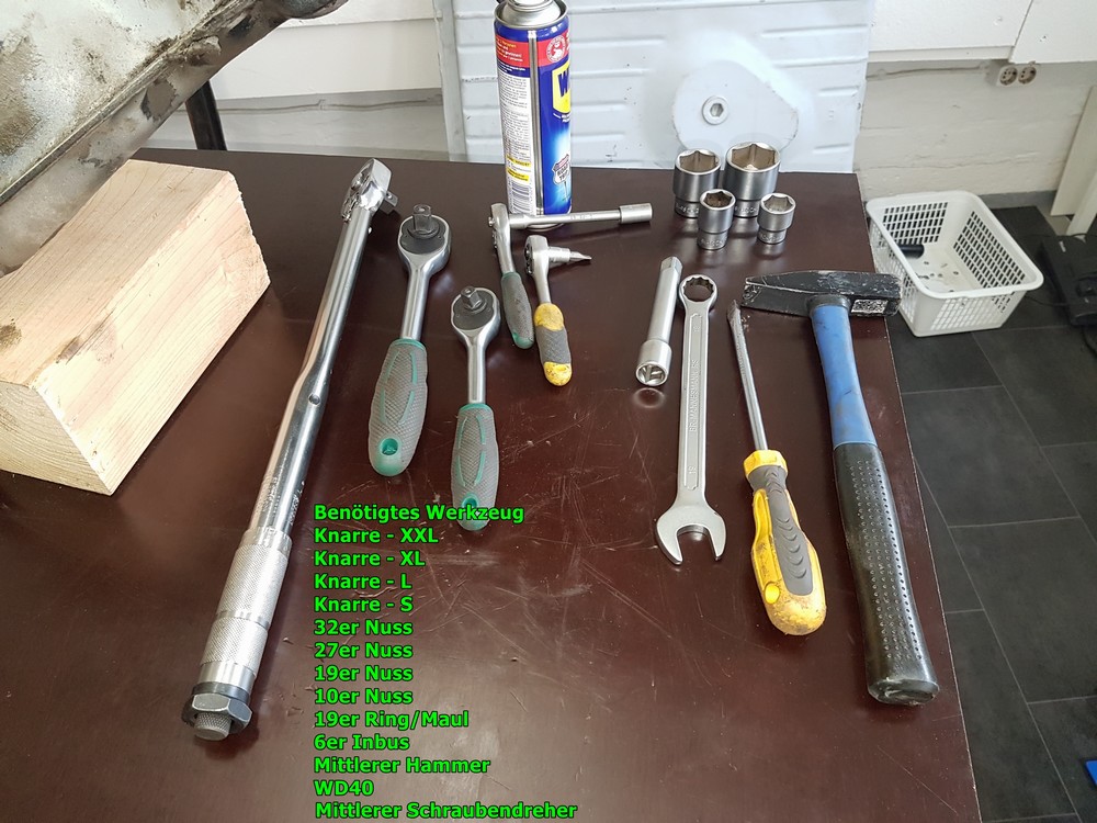 Viel Spass dabei, die Verschraubungen haben eine 32er Schlüsselweite. Hier hatte ich selbst mit der XXL Knarre ein Problem die zu lösen, aber wie heisst es so schön......wo rohe Kräfte sinnlos walten........da waren sie auf jeder Seite schnell los.