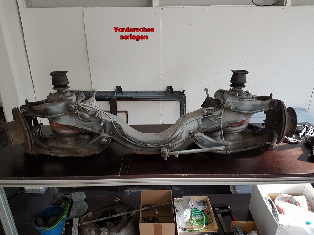 Heute am 16. März 2018 lag jetzt schon zum 4. Mal in 18 Jahren eine Vorderachse auf meiner Werkbank die komplett zerlegt werden musste. Nur mal so zur Info: 2000 Jaguar vom MK2, 2006 vom Jaguar EType und 2008 W107 500SL. Jede von ihnen hatte beim Zerlegen so ihre Tücken und Eigenarten und das wird wahrscheinlich auch beim W112 nicht anders sein.