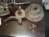 Die Bremszangen, laut Fahrgestellnummer sollten es Teves sein, sie waren nicht mehr angebaut, die lagen ausgebaut mit anderen Teilen in einer grösseren Holzkiste. Na Ja, die sind eh nur mit 2 Bolzen an den Achsschenkeln verschraubt, habe ich die Arbeit schon mal gespart.