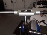 Zum Ausziehen der Buchsen habe ich darin ein M22 Gewinde geschnitten, also 2 mal ein 22er Gewinde schneiden, in der oberen und in der unteren Buchse. Das Schneiden war mit dem 3er Gewindebohrersatz M22, dem grossen Wendeisen und ein wenig Schneidöl relativ einfach.......a piece of cake. Jetzt war alles bereit zum Ausziehen der beiden Buchsen.