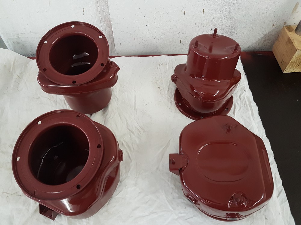 Luftkammern sandgestrahlt und lackiert in ochsenblutrot |