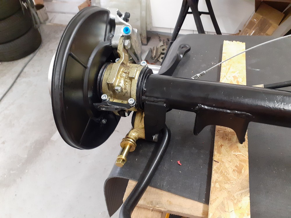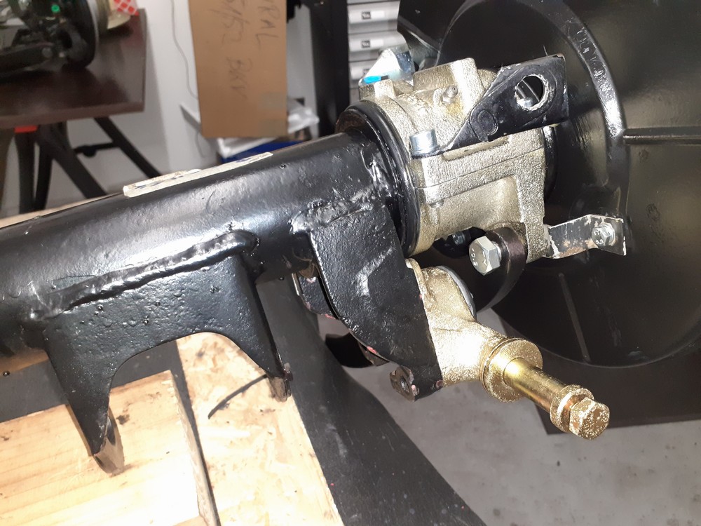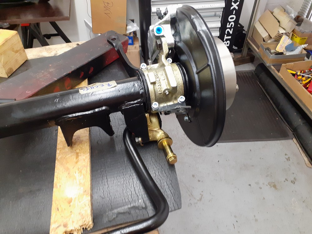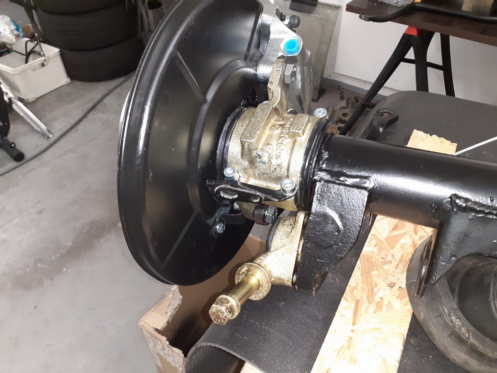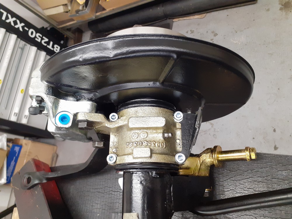 Die Instandsetzung der Bremsabstützung der Hinterachse ist fertig.