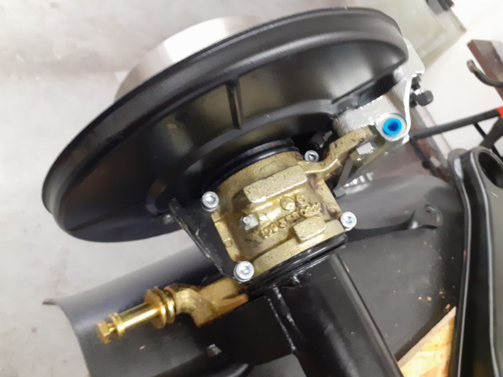Am 26.10.2018 habe ich die instantgesetzte luftgefederte Hinterachse bei LT abgeholt und in meine Werkstatt gebracht. LT's Auftrag war allerdings nicht die Bremsen, die Bremsniederhaltung, die Schubstreben und auch nicht den Drehstab instandzusetzen.