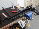 Dann habe ich überholten Federkolben auf die Schubstreben montiert. Hierbei muss man genau achtgeben dass man die Schubstreben und auch die Federkolben nicht verwechselt - da ist eine linke und rechte Schubstrebe und auch ein linker und rechter Federkolben. Die Schubstreben haben an der Unterseite vorne, da wo die Lager für die Befestigung am Unterboden sind, ein 1/3 rundes Verstärkungsblech aussen am Rand aufgesetztnund müssen so eingebaut werden dass die 1/3 runden aufgesetzten Bleche bei der Montage nach innen gereichtet sind. Die Federkolben Haben eine Markierung, L=Links und R=rechts.