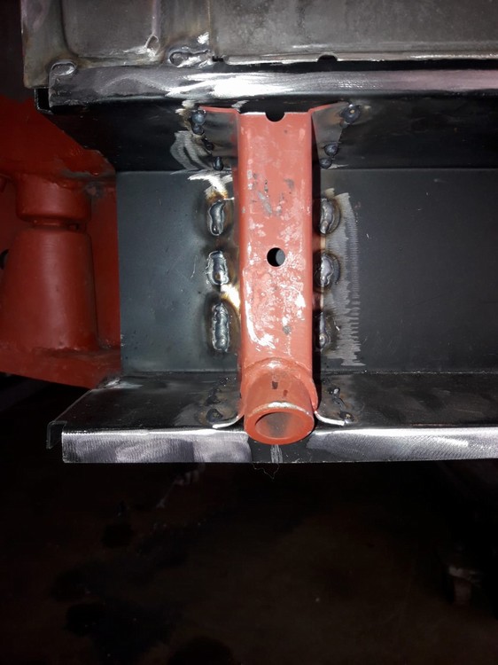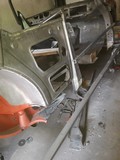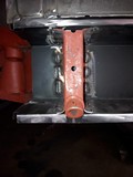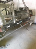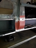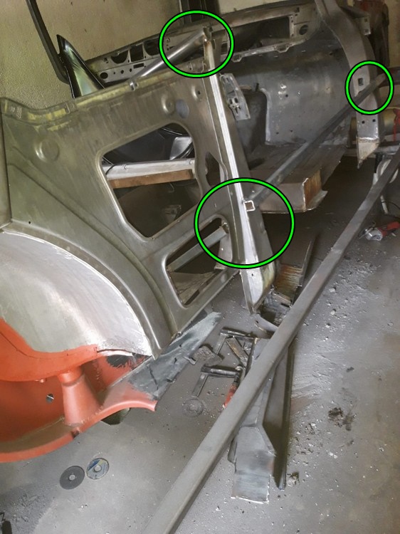 Karosserie Versteifungsrohre eingeschweisst, links der neue Längsträger (rot) |