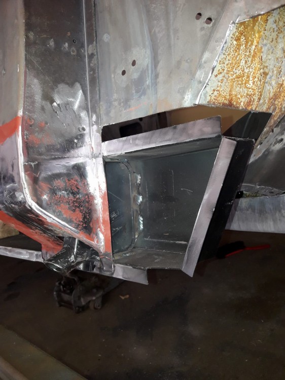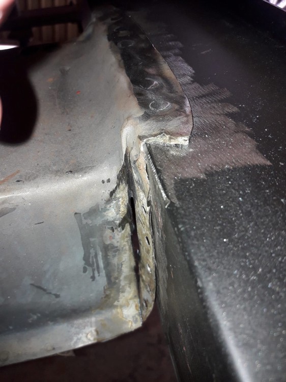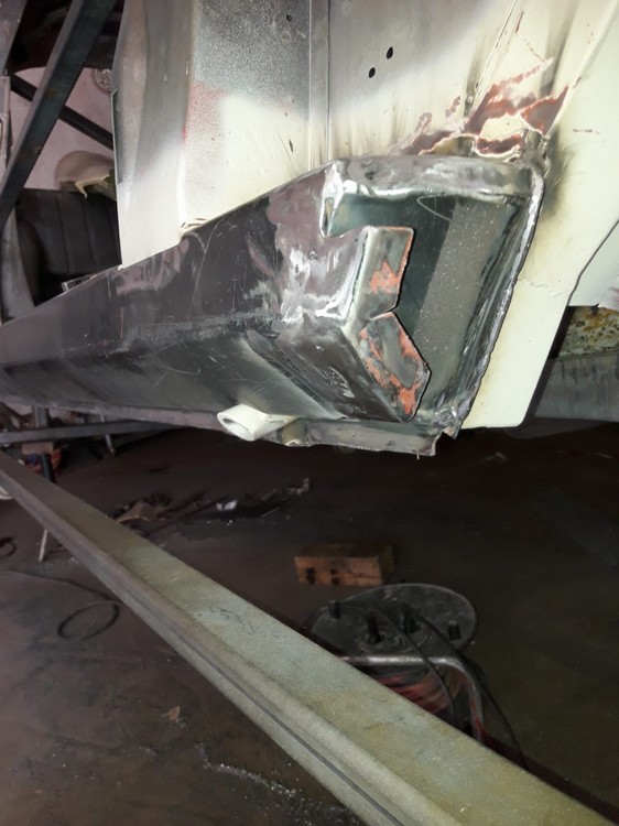 Der neue Aussenschweller rechts eingschweisst hier am hinteren Radeinbau |